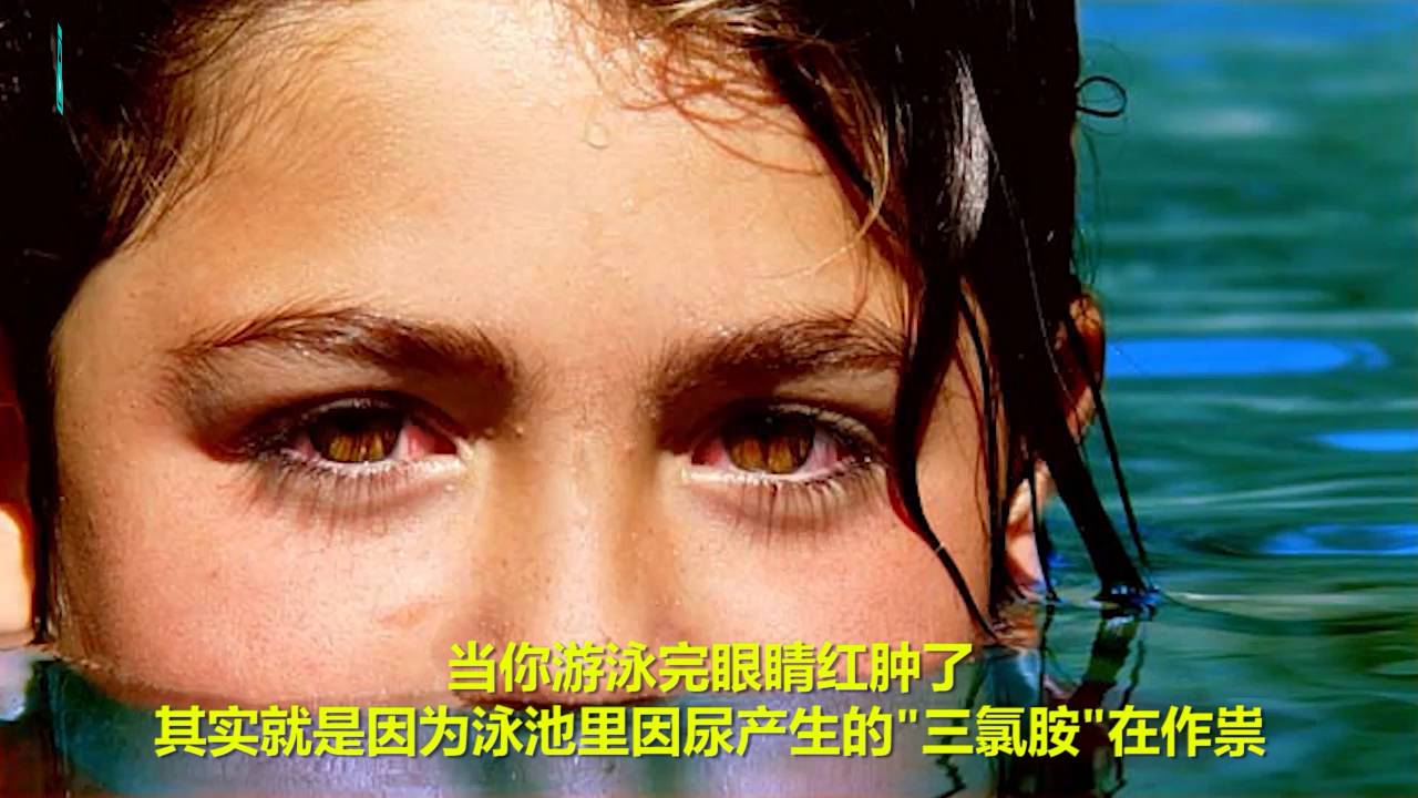 有的時候游泳后會發(fā)現(xiàn)眼睛紅腫了,其實就是因為泳池里的尿和消毒氯反應(yīng)所產(chǎn)生的“三氯胺”在作祟。