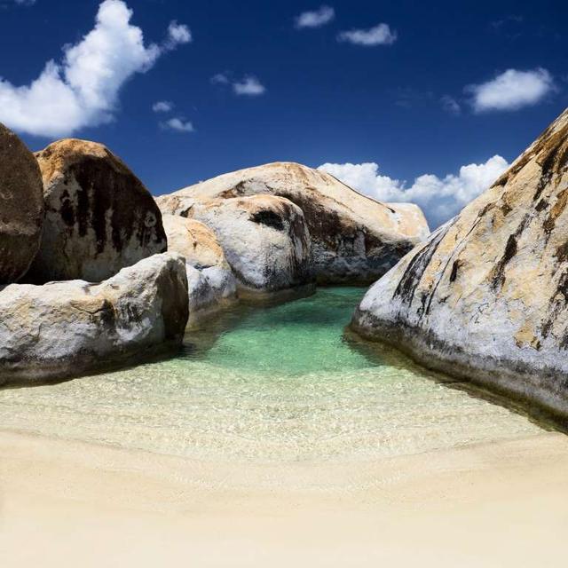 5.維珍哥達池,在英屬維爾京群島的維爾京戈爾達上,這些天然的浴池使您可以潛入加勒比海的碧綠海水中。