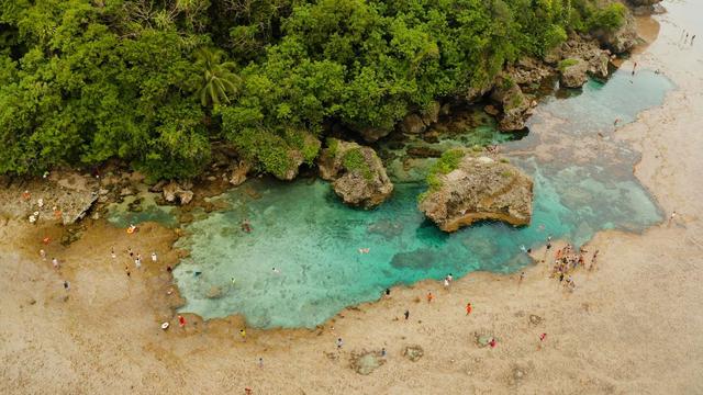 6.錫亞高天然泳池,錫亞高島是菲律賓棉蘭老島東北沿岸小島,東臨太平洋,面積438平方公里。穿越錫亞高不可錯過非常著名的景點天然游泳池,綠松石水包裹在巖石中。
