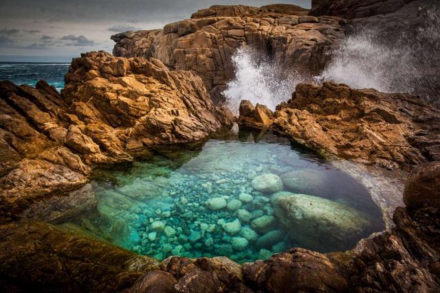 7.澳大利亞的綠色沙灘泳池,在澳大利亞南部,這個天然瀉湖色的游泳池由許多巖石組成。 就像很多可以游泳的游泳池一樣,遠離遠處的沖浪者浪潮。