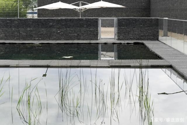 為了創(chuàng)造一個大尺度的,有著高質(zhì)量水質(zhì)監(jiān)控,并實(shí)現(xiàn)環(huán)境保護(hù)和自然過濾的泳池,設(shè)計(jì)師首先建立了通過石頭,砂礫,沙子和植物進(jìn)行水體凈化的泳池技術(shù),在設(shè)計(jì)更衣室時也采取物質(zhì)為主導(dǎo)的觀念,從而實(shí)現(xiàn)技術(shù)契合,美學(xué)統(tǒng)一的設(shè)計(jì)。
