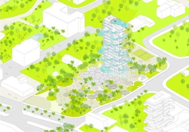 大廈的外面被一系列的泳池梯田式包圍,里面有19個精裝修的公寓,每一戶公寓都配有獨(dú)立的游泳池。利馬索爾塔樓的設(shè)計(jì)策略是創(chuàng)造一個“獨(dú)立島嶼”,泳池陽臺系統(tǒng)整合到外部結(jié)構(gòu)中,從而創(chuàng)造了一種奢華的生活體驗(yàn),外部與內(nèi)部相融合。