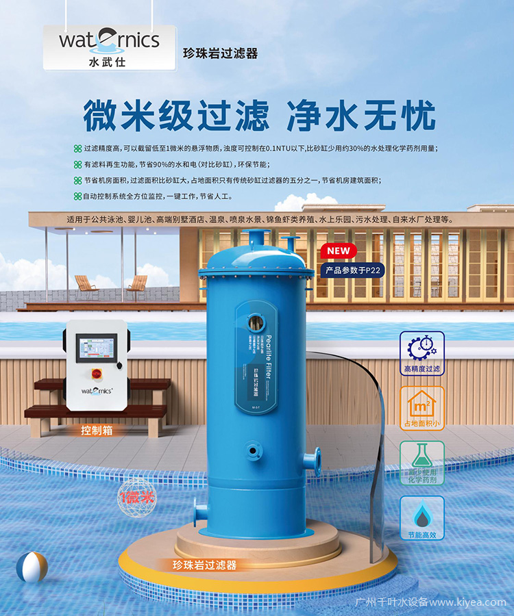 在泳池過濾設(shè)備方面,廣州千葉上市了Waternics水武仕珍珠巖過濾器,以及AQUA愛克膠衣缸過濾器、AQUA愛克自動反沖洗過濾系統(tǒng)等新品。廣州千葉新引進的Waternics水武仕珍珠巖過濾器,擁有微米級過濾精度,可徹底過濾低至1微米的懸浮物,有效提升池水清澈度,減少化學藥劑使用量;具備濾料再生功能,節(jié)省水電,環(huán)保節(jié)能;同時搭載自動控制系統(tǒng)可全方位監(jiān)控運行,操作簡單智能;設(shè)計精巧,占地面積小。