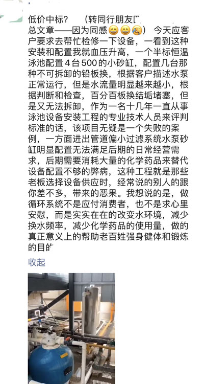 近日,一則短文配上小視頻在泳池行業(yè)人員中大量轉發(fā),內容如下:
