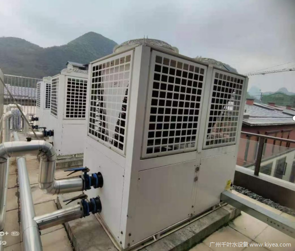 桂林某高端民宿使用廣州千葉提供恒溫?zé)岜?,使用后泳池水溫舒適,客人很滿意